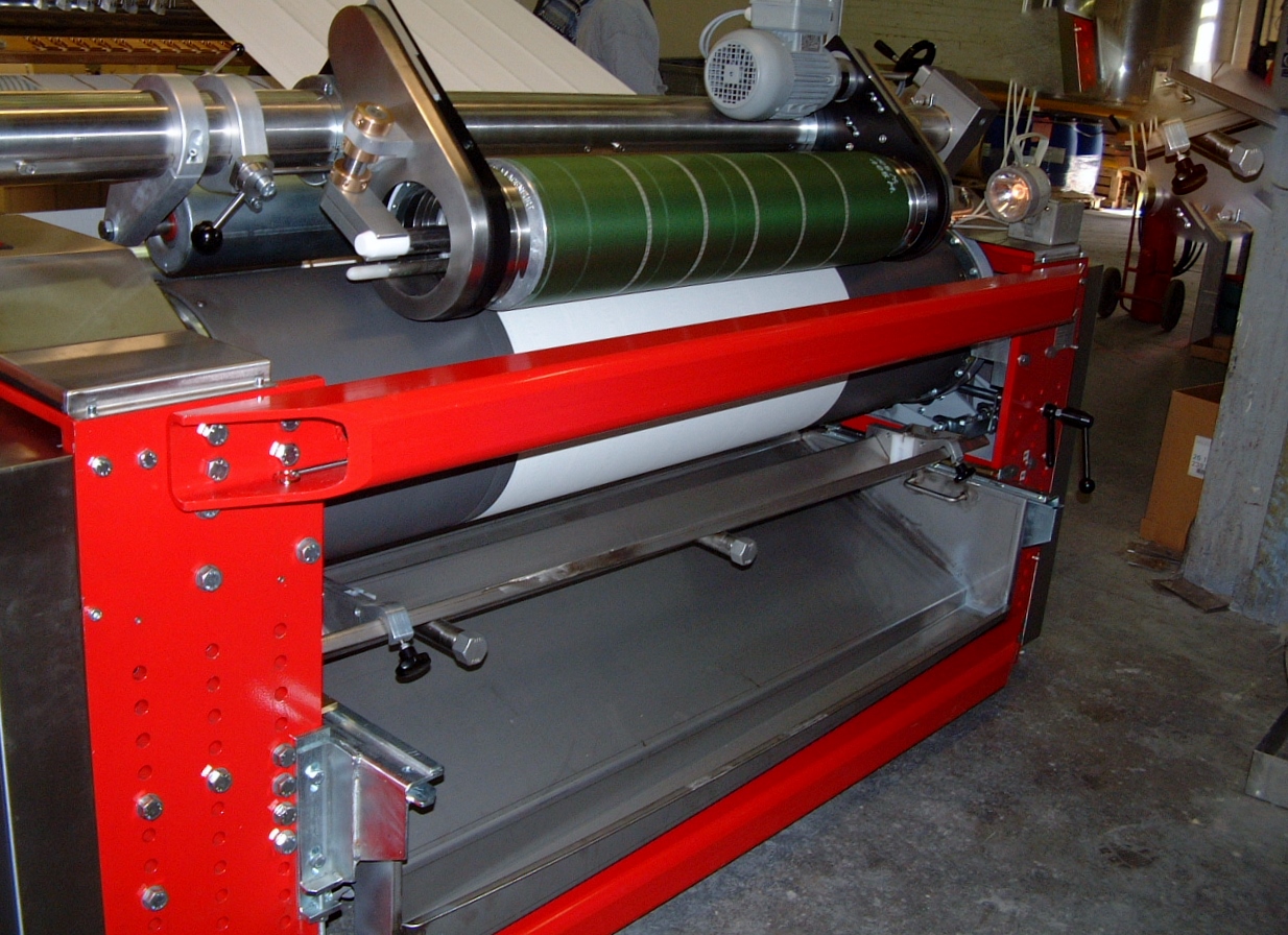 Rundschablonen Druckmaschine mit oder ohne Magnetsystem. Dosierrolle und auch Streichrakel mit Magnetanpressung. Rakelgerät mit Streichklinge auch ohne Magnetsystem.Die Druckstation kann für horizontalen, schrägen oder vertikalen Abzug ausgelegt sein. Druck von verschiedenen Pasten auf unterschiedlichem Material mit V/max. bis zu 100 m/min. Kombination mit VARIOROL oder ROLLonROLL – System möglich. Für diese Kombinationen ist der Magnetbalken in einer Magnetwalze verstellbar angeordnet.